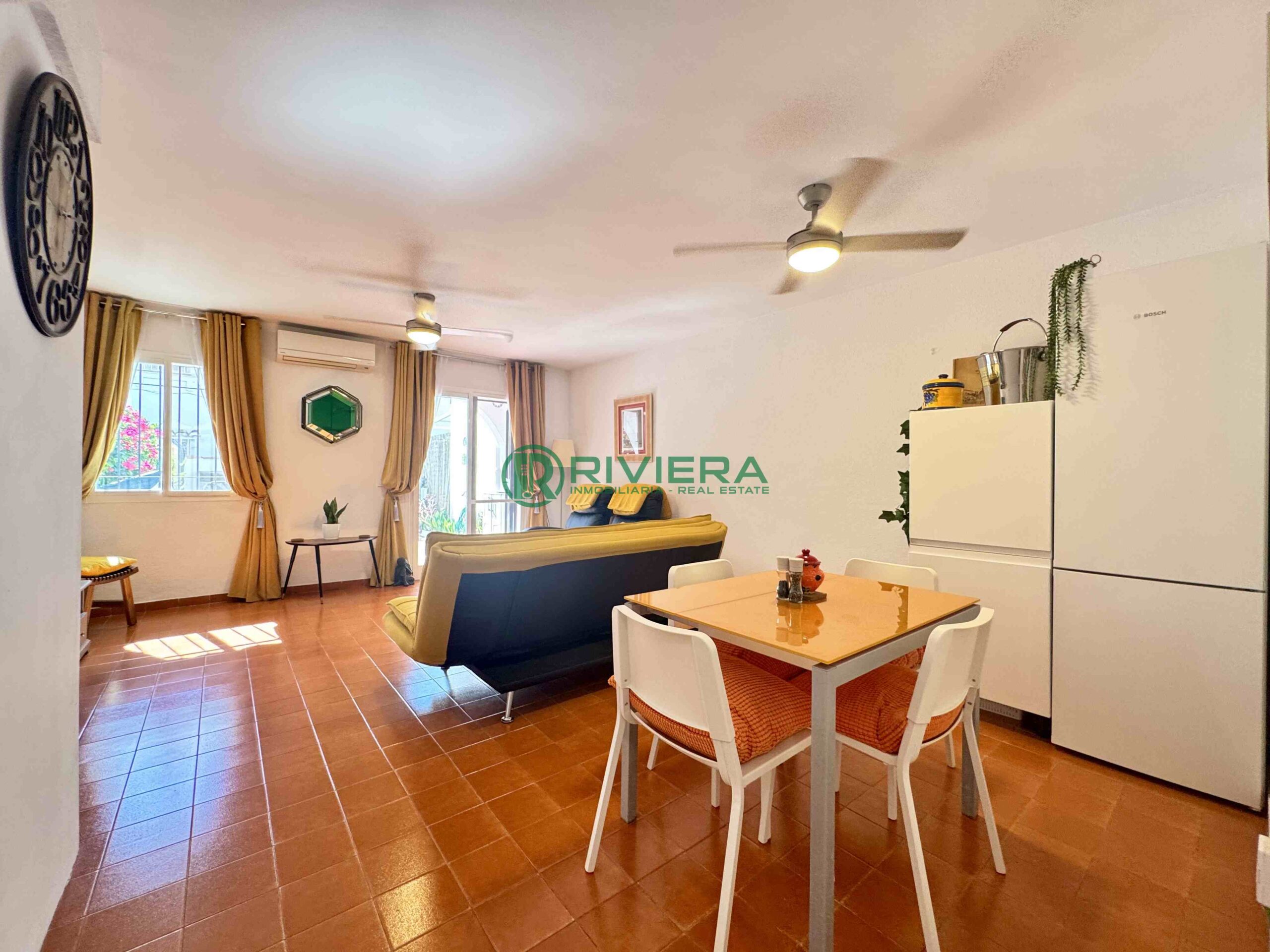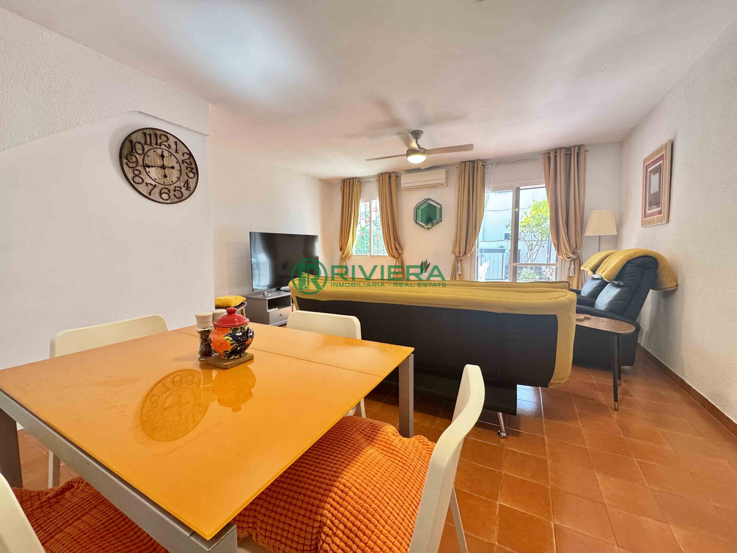 Discover this charming townhouse located in a quiet urbanization with Andalusian style, perfect to enjoy the sunny climate of the Costa del Sol. With 97 m² built, this property is distributed in ground and ground floor, offering a cosy entrance hall that welcomes you. The spacious living/dining room leads out onto a private patio of approximately 36 m², ideal for al fresco dining or simply relaxing in the sun.